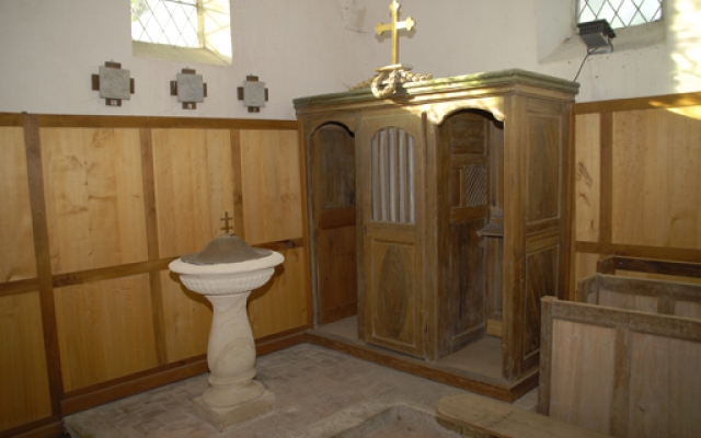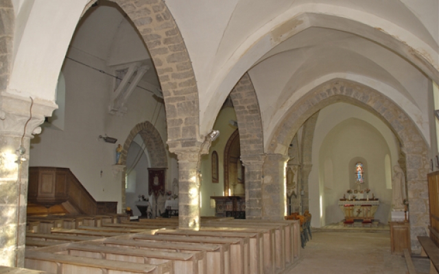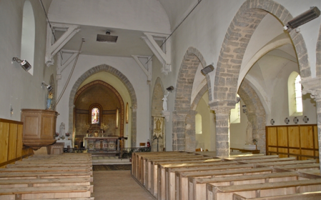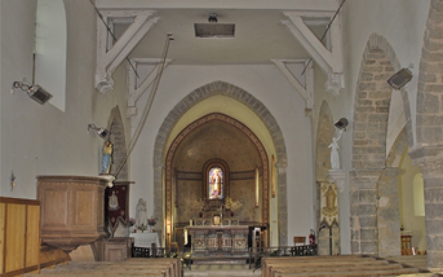 Ce qui frappe le plus en entrant dans l’église, est l’impression d’unicité. Les bancs de bois du XIXème siècle forment une seule ligne de l’allée centrale à celle du bas-côté et les boiseries, fraîchement restaurées, couvrent les murs sud et nord, créant ainsi un unique et vaste espace.