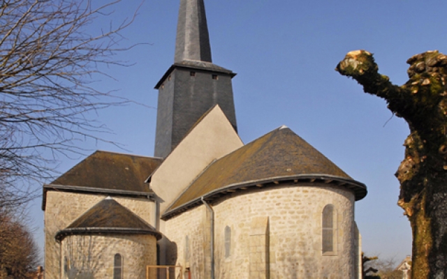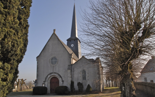 Vous ne pouvez pas ne pas la trouver, sa flèche penchée et élancée domine le village. En approchant vous serez surpris de la découvrir en dehors du bourg, à la limite des champs, au centre d’une vaste place, entourée par une ceinture d’arbres. L’église se dresse au milieu d’un grand espace de silence. Comme beaucoup d’églises, elle fût, jusqu’en 1920, entourée du cimetière.