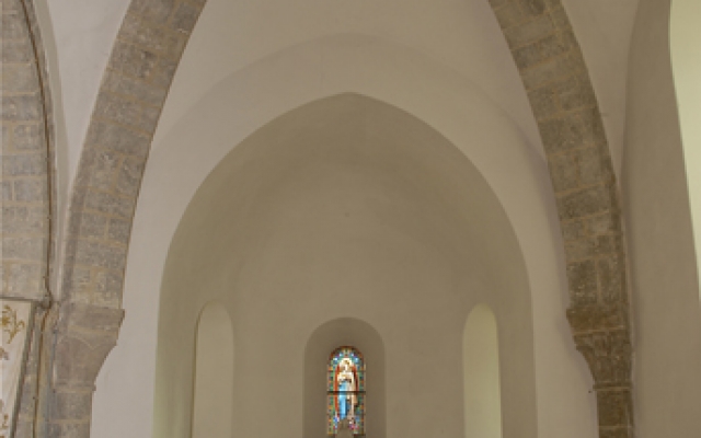 Si la nef est un mélange de roman et gothique reconstituée à travers plusieurs transformations et agrandissements, les extrémités du transept et les absides manifestent une plus grande unité. Les quatres colonnes cylindriques qui soutiennent l’arc porteur de la voûte sont surmontées de huit chapiteaux, tous différents les uns des autres, très travaillés. Il convient de les regarder tous !